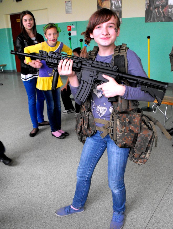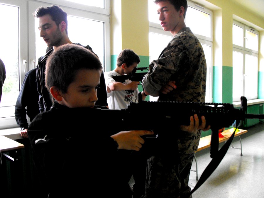Już po raz kolejny uczniowie i nauczyciele V Liceum Ogólnokształcącego zaprosili nas do swojej szkoły by wspólnie uczcić święto wszystkich dzieci. Przygotowali dla nas fantastyczną zabawę, podczas której mogliśmy uczyć się różnych układów tanecznych, uczestniczyć w licznych grach i zabawach ruchowych, bawić się w kalambury z nagrodami i mieć bajecznie malowane twarze. Największą atrakcją, szczególnie dla chłopaków, był pokaz broni palnej i wojskowego umundurowania oraz różne zabawy strzeleckie. Wszystkim tym atrakcjom towarzyszyły stoły uginające się wręcz od słodkości oraz oczywiście bardzo miła atmosfera. Nawiązaliśmy nowe znajomości z kolegami i koleżankami z tej szkoły i wspólnie spędziliśmy wspaniałe popołudnie. Aż do samego wieczora byliśmy pod wrażeniem tych wszystkich przeżyć. Bardzo dziękujemy i już nie możemy się doczekać naszych następnych spotkań!